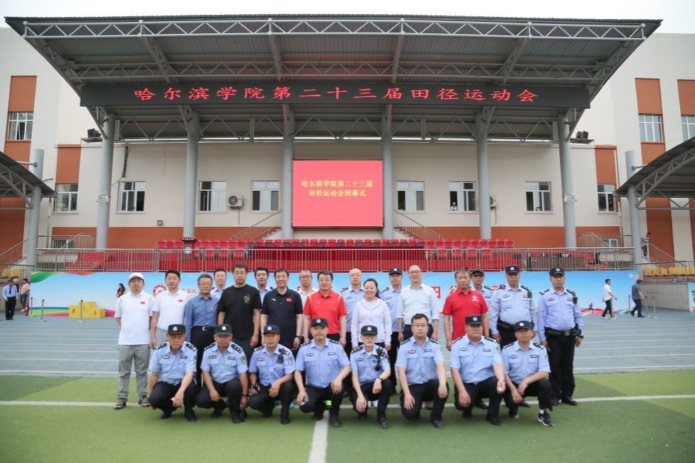 美好的时光总是短暂的,随着党委副书记李娜“我宣布——哈尔滨学院第二十三届田径运动会圆满结束,让我们期待明年再见”的话音落地,紧张、高效、精彩纷呈的校田径运动会落下帷幕。校领导班子邀请保卫处工作人员和哈西派出所驻场警员合影留念。