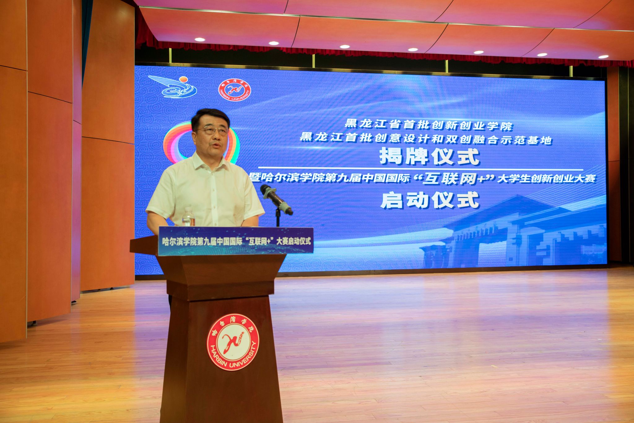 (文/李健)6月19日下午,黑龙江省首批创新创业学院和首批创意设计与双创融合示范基地揭牌仪式暨哈尔滨学院第九届中国国际 “互联网+”大赛启动仪式在音乐与舞蹈学院小音乐厅举行。校长、党委副书记于成学出席活动并讲话,党委副书记李娜,副校长孙红镱、纪委书记马弘莉、副校长于少鹏、副校长吴旭峰出席活动。黑龙江省教育厅高教处双创教育负责人刘洋博士到会祝贺。学校相关职能部门负责人,各二级学院领导、创业导师及学生代表共220人参加活动。启动仪式由副校长宋国利主持。