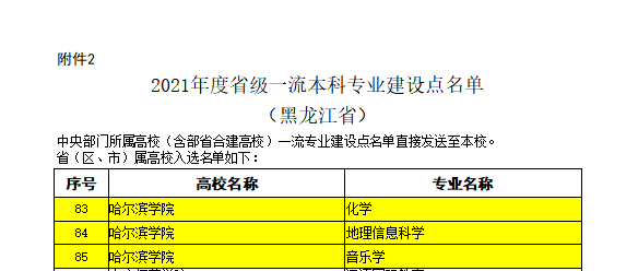 (文/马彦龙)近日,教育部办公厅公布了 2021 年度国家级和省级一流本科专业建设点名单,我校化学、地理信息科学、音乐学3个专业入选黑龙江省一流本科专业建设点。截至目前,学校共有国家级一流专业建设点1个,省级一流专业建设点12个。
