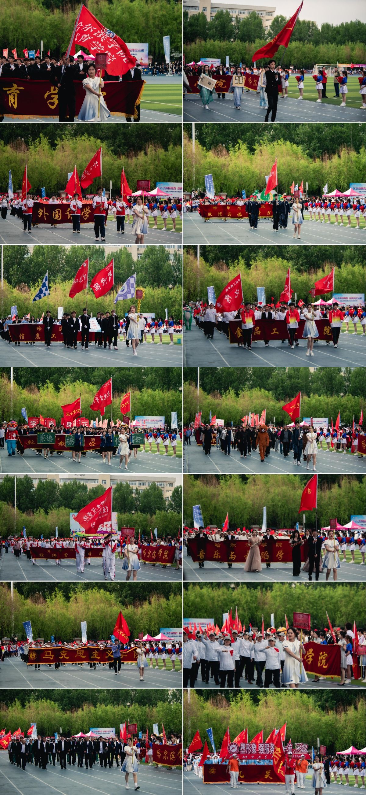 上午8时,伴随着雄壮激昂的《运动员进行曲》,学校国旗护卫队、校旗及彩旗队队、各学院方队、图书馆、后勤和机关的18支方队依次入场,接受主席台检阅。整齐划一的步伐、坚定的眼神、挺拔的身姿、嘹亮的口号展现了学校师生锐意进取、昂扬向上的精神风貌。