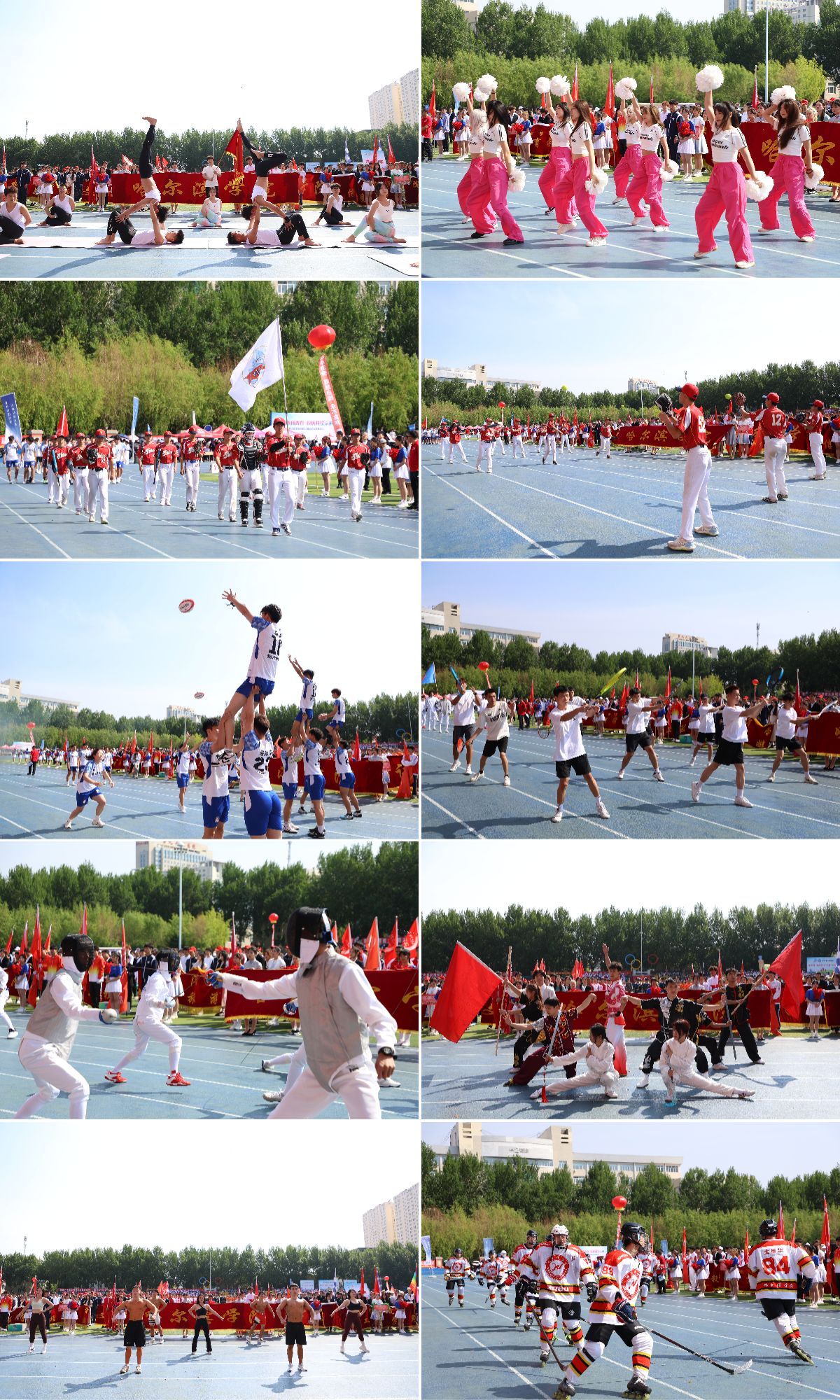 开幕式后,在观众热烈的掌声和欢呼声中,大会各项赛事根据赛程依次进行。跑道上你追我赶,场地内色彩纷飞,各学院经过精心排练的大型团体操比赛同时进行,优美的旋律结合婀娜的舞姿,为大会带来了一场视觉盛宴,展现了我校大学生顽强奋进和勇于拼搏的精神。