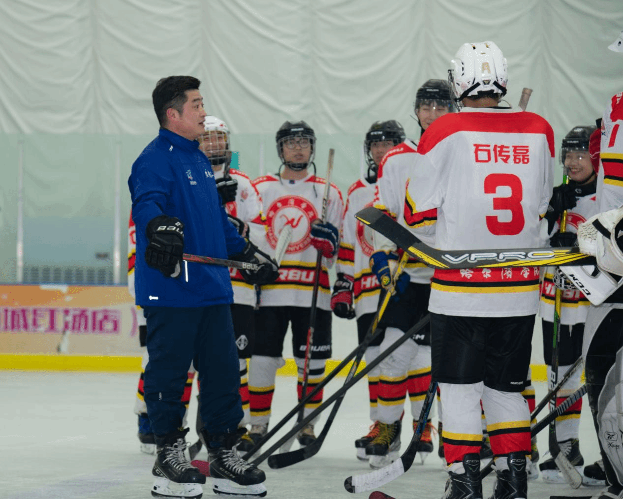 随后,冠军运动员前往哈西炫采冰上运动中心,对我校冰球队、速滑队及花样滑冰队成员进行指导。