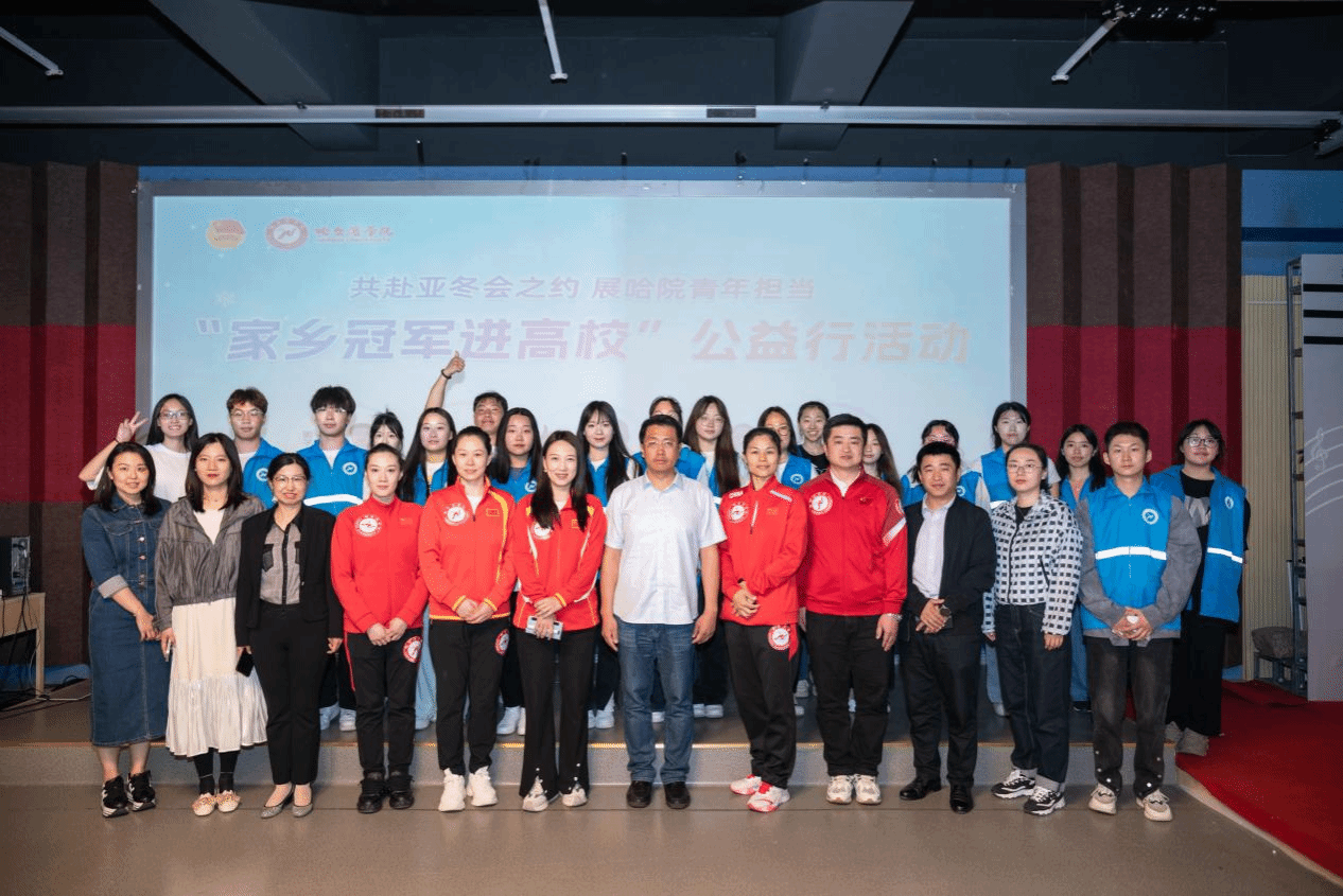 (文/黄婷婷)在即将迎来我校90周年华诞之际,为弘扬中华体育精神,激发广大师生对冰雪运动的热爱和参与热情,6月5日下午,校团委在1401演播室举办“冠军家乡行 相约在哈院”活动,冠军运动员杜超、于鑫娜、朱秋颖、马海艳、李文文走进哈尔滨学院,学校党委委员、副校长吴旭峰,校团委副书记张玉娟,校团委工作人员及200余名学生参加此次活动。