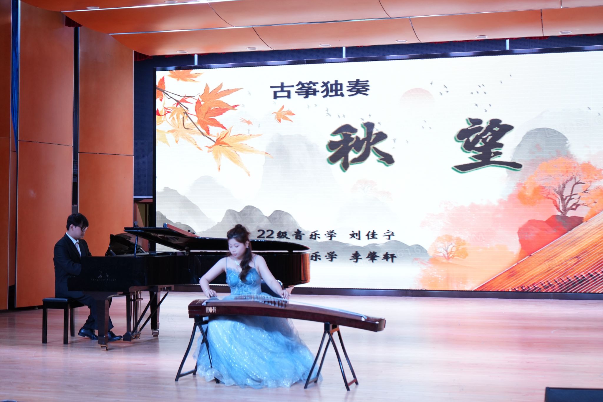 第一部分技能展示的作品有,女声独唱《青玉案·元夕》、古筝独奏《秋望》、钢琴独奏《皮黄》、器乐合奏《百鸟朝凤变奏曲》,学生们通过对声乐、器乐传统音乐作品的二度创作,展示了扎实的专业技能和丰富的音乐表现力。