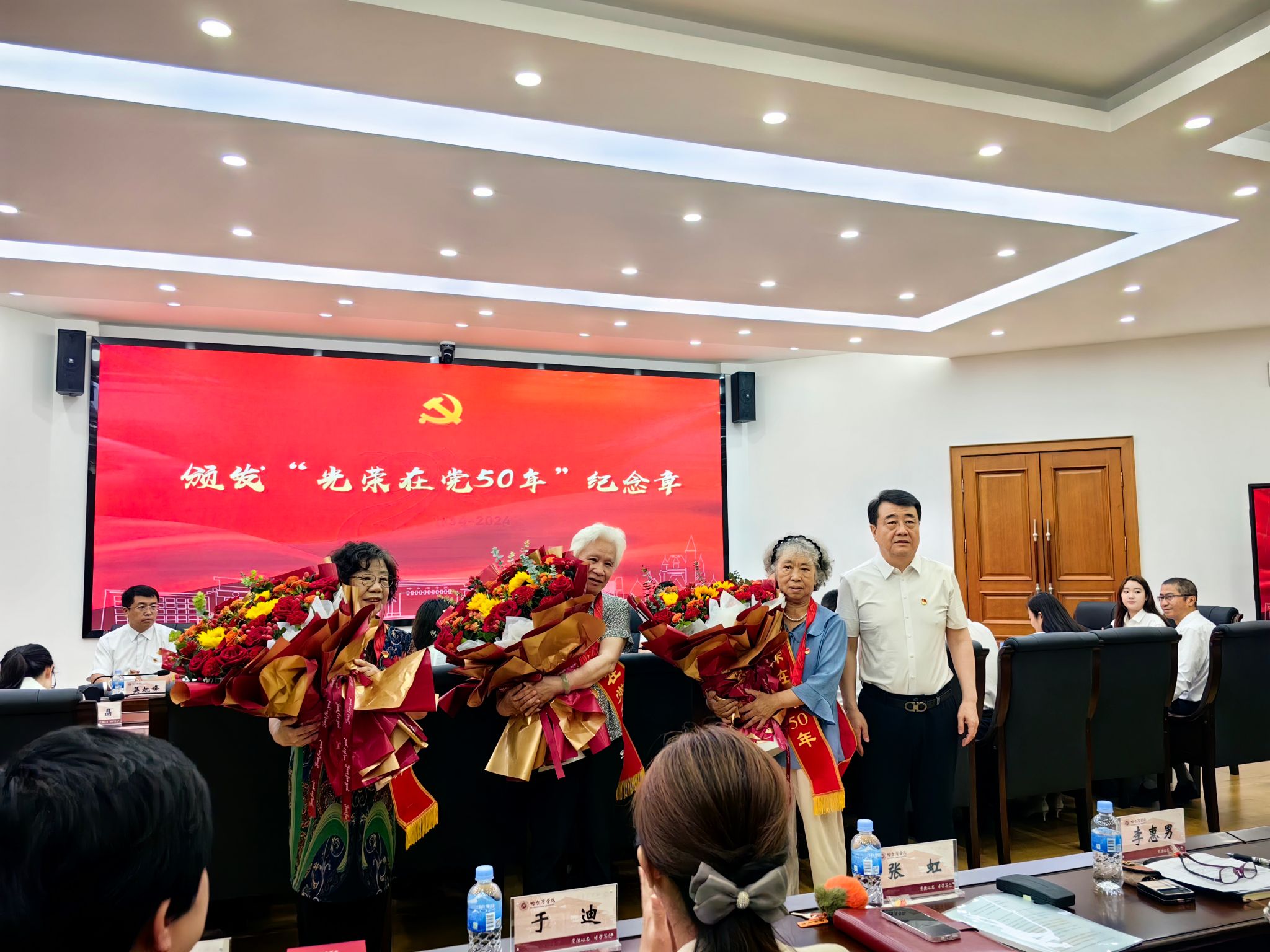 会上,于成学为郭秀民、梁惠敏、李军等三位老党员颁发“光荣在党50年”纪念章。校领导为“优秀党建品牌”“特色党支部”项目授牌。11位与会党员代表立足岗位,讲初心、话使命、谈奉献,表示将不断提高党员意识,增强党性修养,发挥先锋模范作用,为学校事业发展作出新的更大贡献。