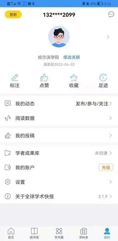 位置关联:关联时读者需在机构地理范围内,允许全球学术快报 APP 使用位置,系统会自动识别读者位置机构信息,认证关联。