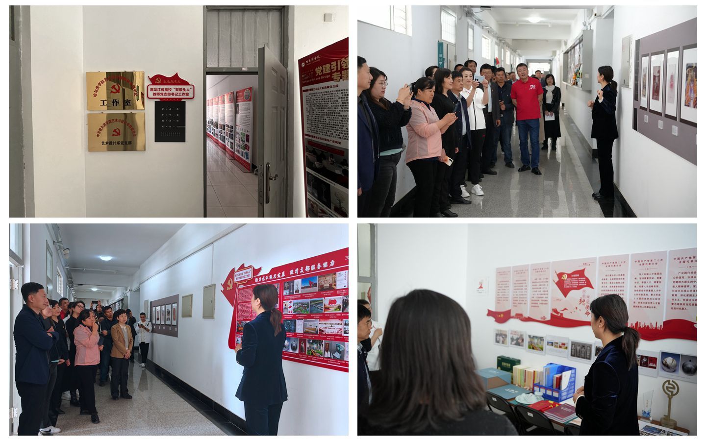 与会人员参观了全国党建工作“样板支部”培育创建展览,党建品牌建设成果装置艺术展览(海报),艺术与设计学院党员之家以及首批黑龙江省高校“双带头人”教师党支部书记工作室。