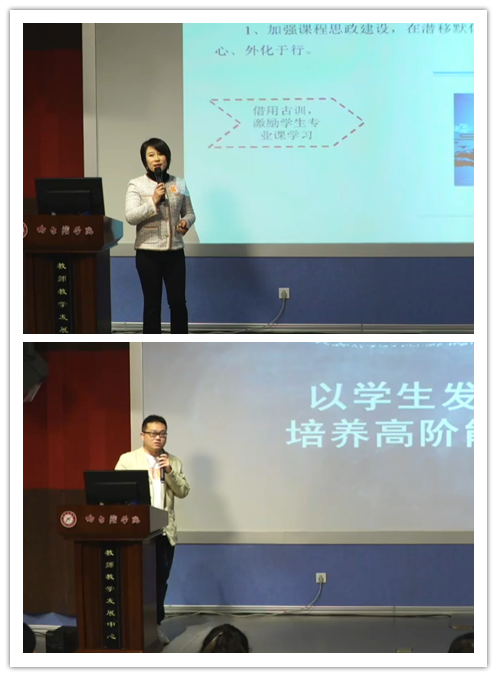 现场评审历时四个多小时。参赛教师(团队)依托不同学科专业的课程,围绕“以学生发展为中心”的教育理念,展示教学改革上的创新举措,分享教学创新成果,结合参赛课程进行教学创新设计汇报。