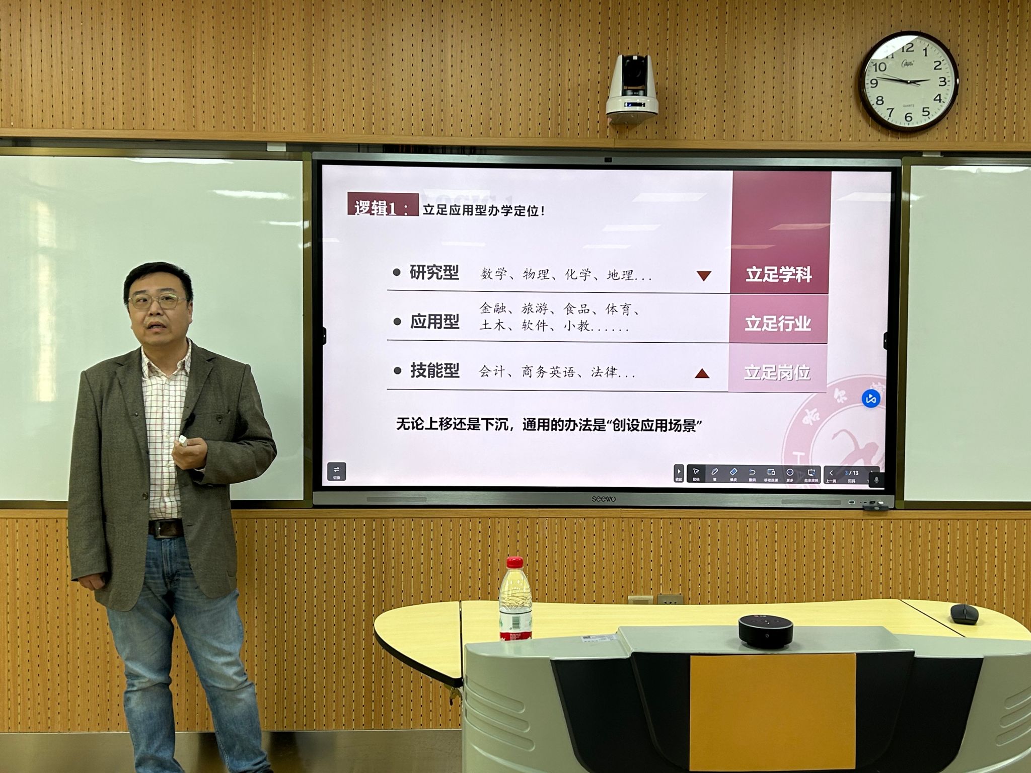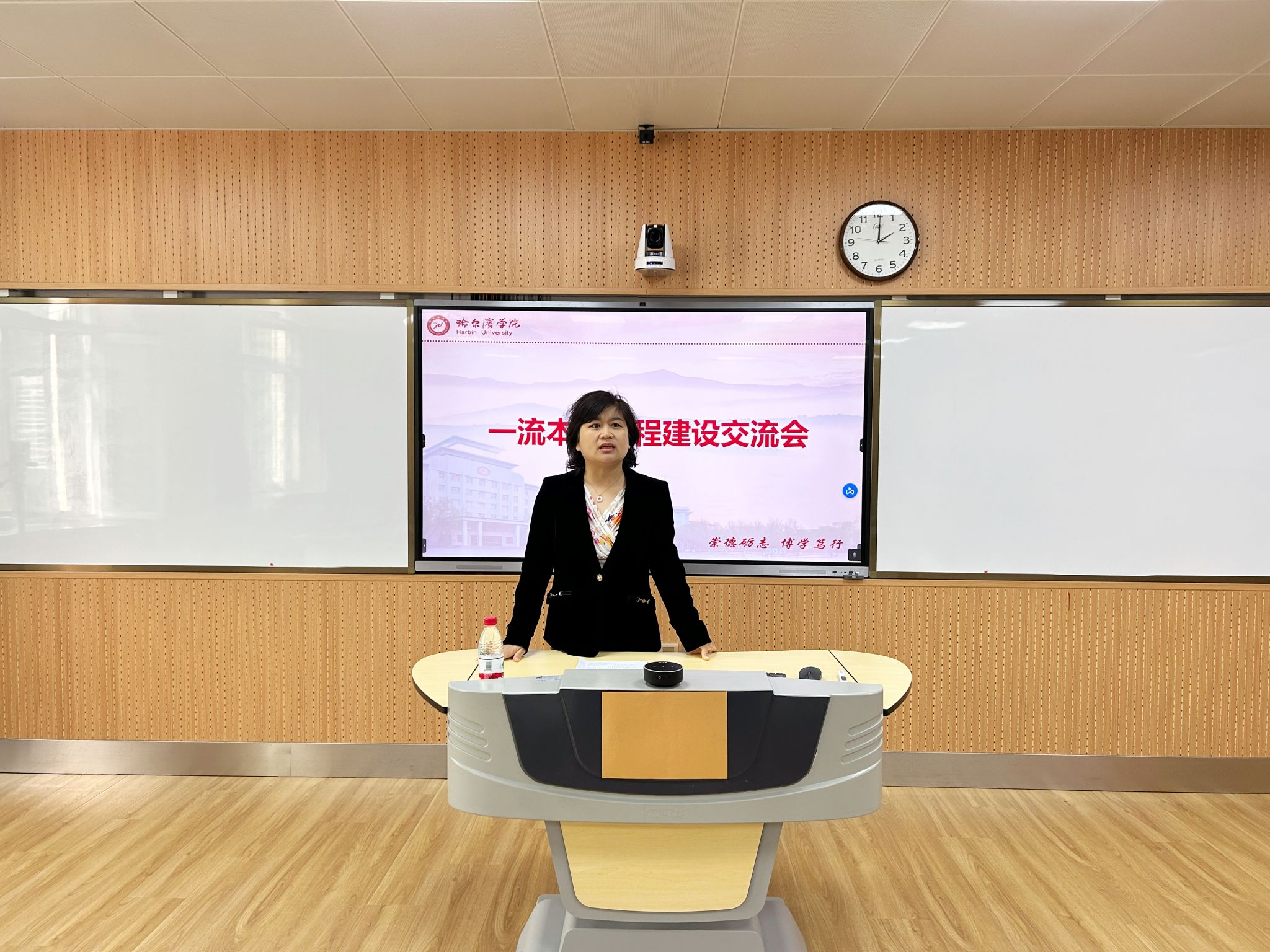 姜艳丽做总结发言,她对两位老师的精彩分享表示由衷感谢,同时给予与会教师三点建议:一是提前谋划,组建团队。充分领会文件精神,做好顶层设计,研读评审指标要点,理清思路。二是全心投入,注重积累。用心、用情、用脑投入教学过程,激发学生兴趣,不断深化课程改革创新。三是精心凝练,突出特色。用心雕琢完善材料,发掘课程特色与亮点,用数字化、信息化赋能课程。学校将持续开展相关培训,为不断提高学校应用型人才培养质量奠定扎实的基础。