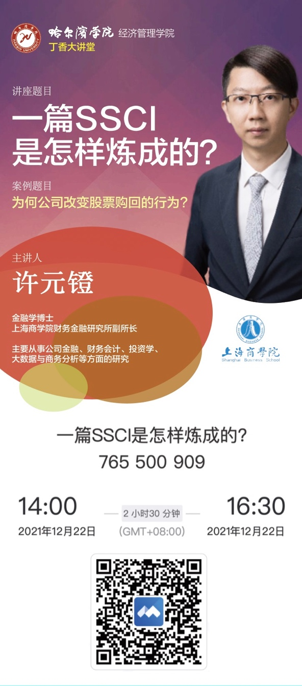 【专家简介】许元镫,金融学博士,副教授, 现任上海商学院财务金融研究所副所长。主要从事公司金融、财务会计、投资学、大数据与商务分析等方面的研究。近五年曾在Journal of Empirical Finance; European Financial Management; Pacific-Basin Finance Journal; International Marketing Review; Journal of Medical Internet Research等国际期刊发表论文二十多篇,主持教育部人文社会科学青年基金研究项目、上海市人民政府决策咨询研究项目等课题。许博士在SSCI写作的过程,选题、选刊、投稿、改稿等方面具有非常丰富的经验。
