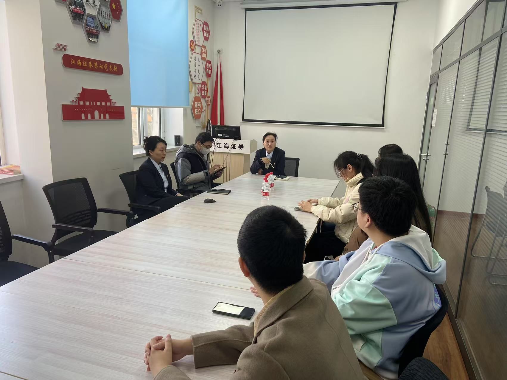 3月10日,实习团队抵达江海证券新疆大街营业部。在证券公司会议室,付敬昕总经理亲自主持实习工作布置会议,对哈尔滨学院师生的到来表示热烈欢迎。他强调,江海证券高度重视与高校的合作,希望通过此次实习,让学生真正了解证券行业的运作模式,提升专业技能。随后,付总经理委托王子彬总监担任本次实习的负责人,全面协调实习期间的各项工作。上午,各部门总监分别为学生详细讲授本部门业务,涵盖市场营销、金融产品、网络金融等多个领域,让学生对证券营业部的组织架构和业务范畴有了初步认识;下午,学生在各部门负责人的带领下,开启了充实的实习之旅。