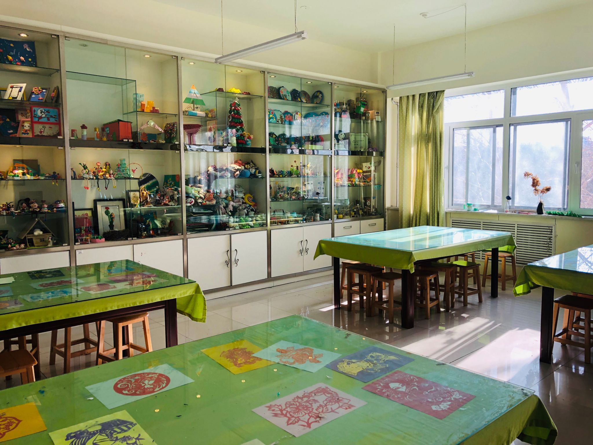 手工教室位于主校区六号教学楼三楼,占地面积约60平方米,分为创作区、展示区和材料储备区三个功能区域。创作区配备有宽敞的桌椅、充足的自然采光,为学生提供舒适、安全的创作环境。展示区用于展示学生的作品,激发学生的创作热情和成就感。材料储备区则储备了丰富的手工材料,包括彩纸、黏土、布料、绳线、颜料等,满足不同手工制作项目的需求。此外,教室还配备了教学设备,如投影仪、多媒体,方便教师进行示范教学和学生进行实践操作。同时,教室还设有专门的储物柜和清洁工具,确保教学环境的整洁与有序。