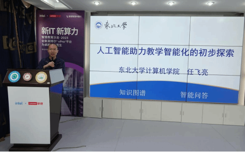 论坛的第二个讲座是任飞亮教授的《人工智能助力教学智能化的初步探索》,任教授以东北大学“人工智能+教育”案例为切入点,将大语言模型、知识图谱等人工智能前沿技术相结合,依托计算机学科优势,面向《离散数学》课程教学,推出了基于TechGPT的智能助教系统,可以实时、全方位、智能地为学生提供个性化助教服务,从而有效地提升学生的课程学习质量,为"人工智能+教育"进行了有益的探索。
