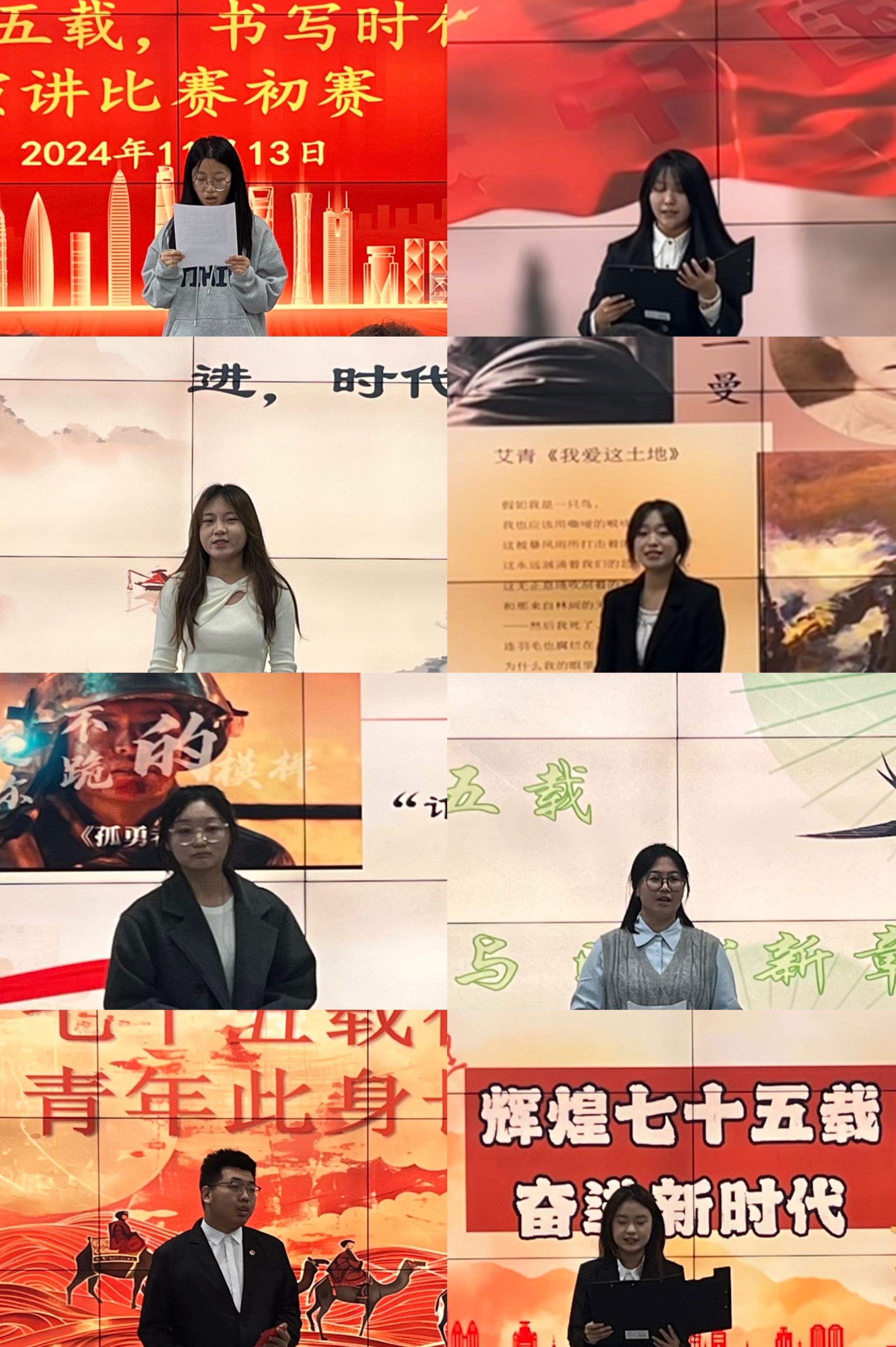 历史的长河波澜壮阔,祖国的山河壮丽多姿。每一颗中国心,都跳动着对大好河山深沉的挚爱;每一份中国情,都凝聚着民族复兴的璀璨荣光。为进一步弘扬爱国主义精神,积极响应“立德树人、思政先行”的热切感召,切实发挥好“大思政课”指引方向、启智润心作用,丰富哈尔滨学院科技文化艺术节活动形式,全面激发哈院学子赓续红色血脉、传承红色基因的热情,马克思主义学院协同共青团哈尔滨学院委员会于2024年11月13日在思政智慧实践基地举办“辉煌七十五载,书写时代华章”系列主题演讲比赛。马克思主义学院党总支书记孙芳携手马克思主义学院教师陈晓利、冯引、张仲广、王莹出任评委,24级思想政治专业石立峰、杨滟霖同学担任主持,来自全校各专业的26位选手参加比赛。
