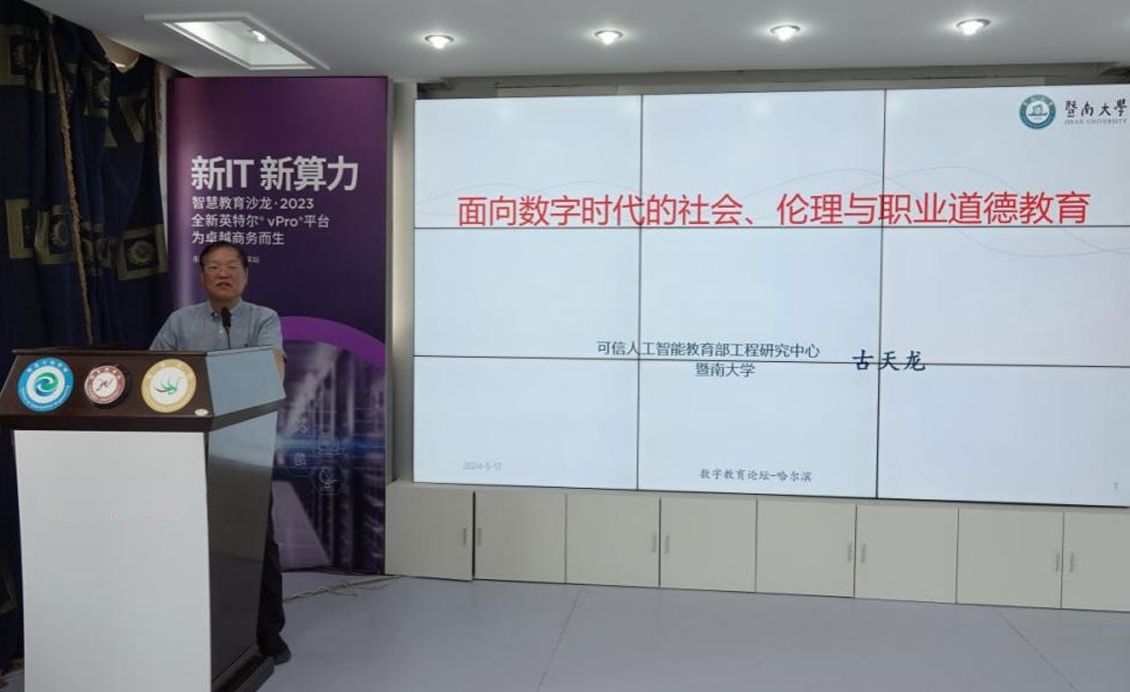 古天龙教授带来了《数字时代的社会、伦理与职业道德教育》报告,古教授的报告围绕人工智能引领的新技术伦理问题,通过数字时代呼唤科技伦理、计算机伦理及其必要性、数字时代的计算机伦理、人工智能伦理课程教学四个方面,讨论了数字时代的社会、伦理与职业道德教育的必要性以及课程教学实践的相关问题。