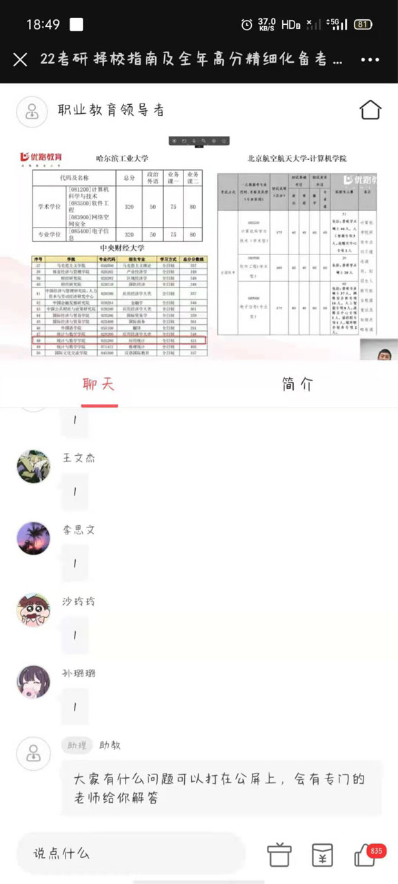 随着社会的发展和大学生的日益增多,应届毕业生的就业压力也变得越来越大,于是很多毕业生将考研作为了缓解就业压力的途径之一。为进一步做好信息工程学院学生考研指导工作,引导学生全面了解考研方面的知识,信息工程学院(软件学院)于3月17日晚18:30邀请北京大学硕士亢俊辉老师开展以“择校指南及高分备考指导”为主题的线上考研指导讲座。