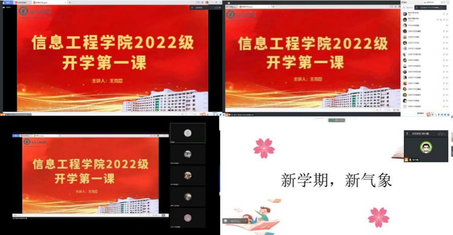 为了深入学习贯彻党的二十大精神,进一步贯彻”以人为本“的教育理念,引领全院学生开启新学期,踏上新征程,信息工程学院(软件学院)于2023年3月10日线上组织召开2023年19,20,21,22级春季新学期“开学第一课”主题活动。学院党委书记王克臣,王克朝院长,全体辅导员和信息工程学院全体学生参与本次活动。