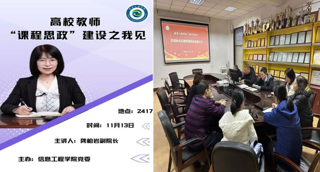 (文/李琳)为深入贯彻落实习近平总书记关于教育的重要论述和全国教育大会精神,坚持用习近平新时代中国特色社会主义思想铸魂育人。11月13日下午在2417开展信息工程学院课程思政研讨会暨党建检查反馈,外国语学院副院长龚柏岩做《高校教师“课程思政”建设之我见》学术讲座,会议由党委书记王克臣主持,党委委员、各党支部书记、班子成员、专业教师和项目申报人参会。