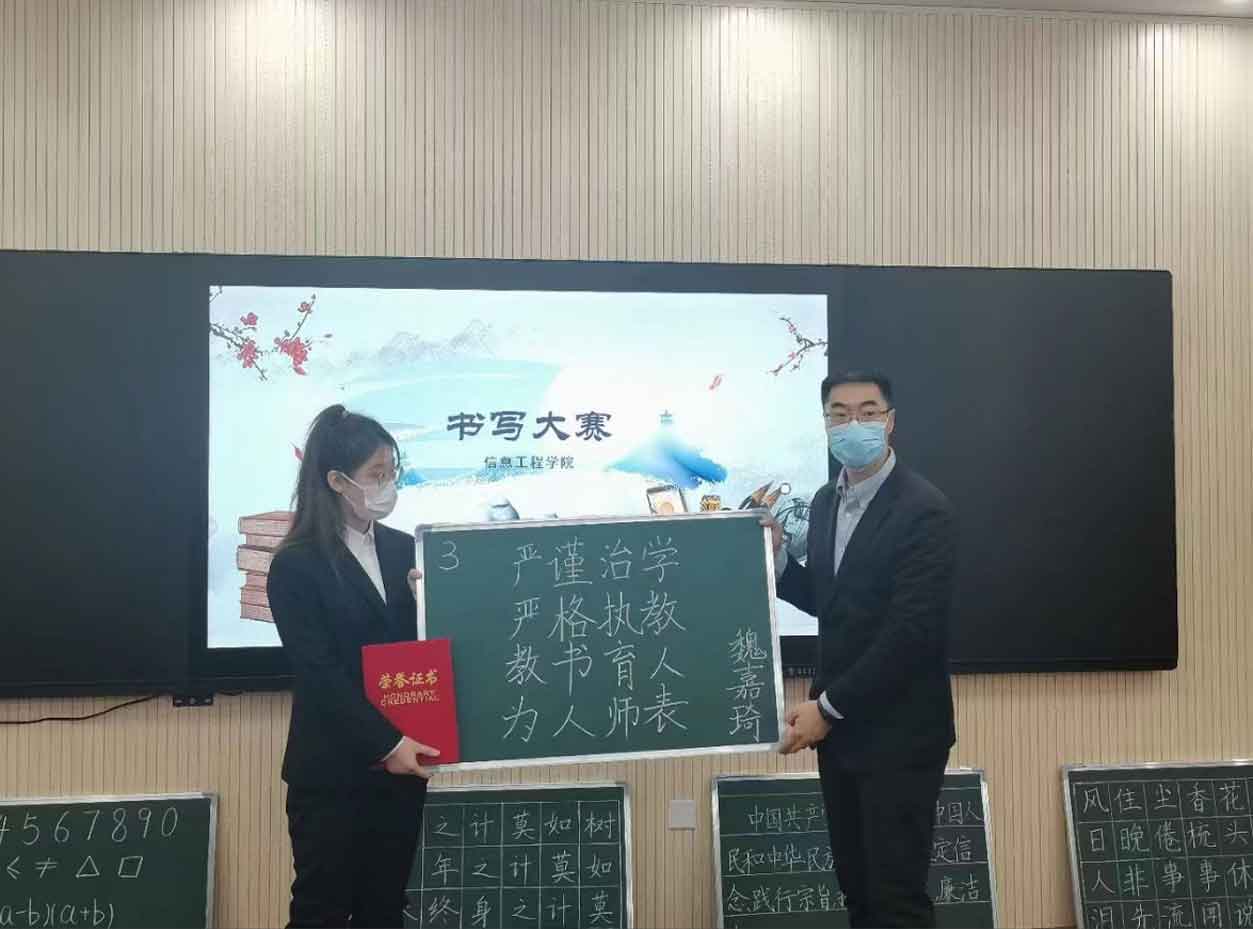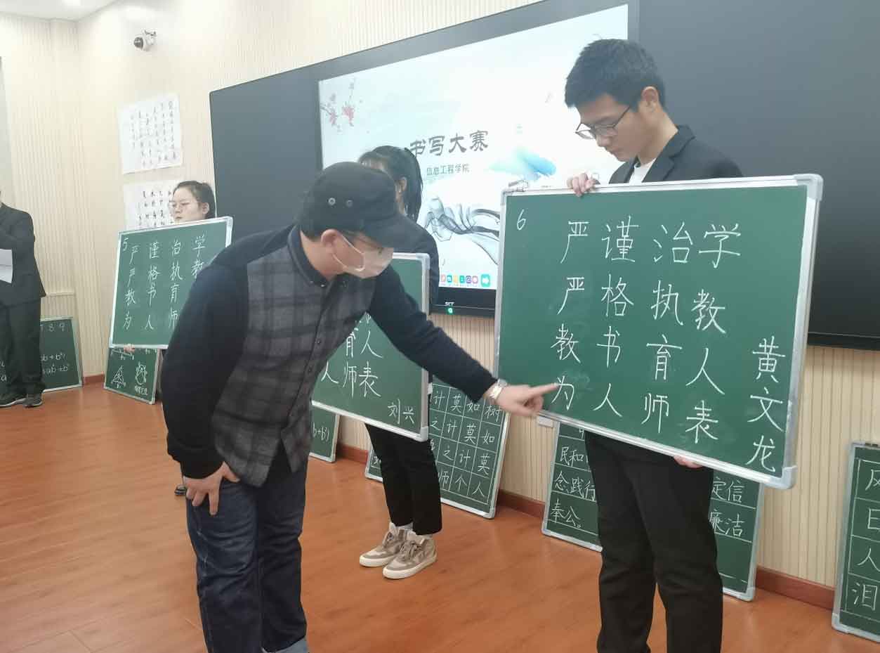 为丰富校园文化,帮助师范生养成规范书写习惯,提高师范生专业素养和书写技能,激发师范生练习书写兴趣,11月23日18:00,信息工程学院(软件学院)在2433室举办规范书写大赛。本次大赛评委有学院党委书记王克臣、正处级辅导员陈思、教师李明哲、刘振杰,辅导员王翠、夏广慧、李琳。