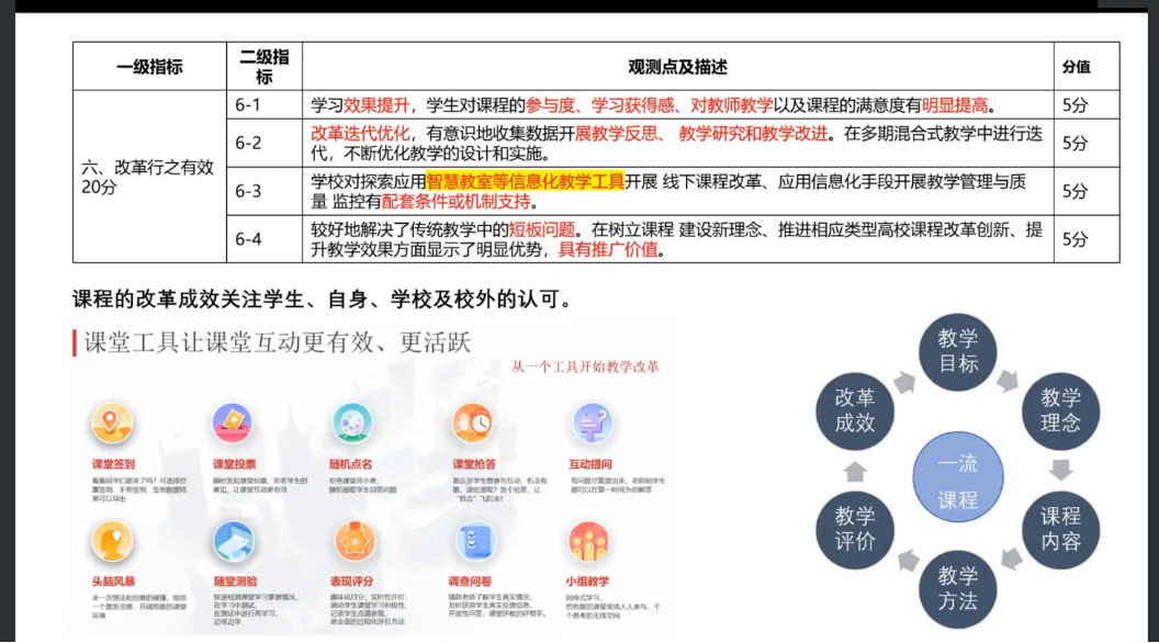 会上,蓝老师就当前一流课程申报的政策背景做了解读,教育部要求把“一流课程”建设作为专业认证的重要核心要素,落实到具体指标上,形成可量化、可监测、可评价的硬杠杠、硬指标。蓝老师以问题为导向,以数据分析为基础,以课程标准为抓手,详细介绍了一流本科课程申报流程,并结合了课程建设方案和建设样例,深入剖析了一流本科课程申报书撰写的各个环节。