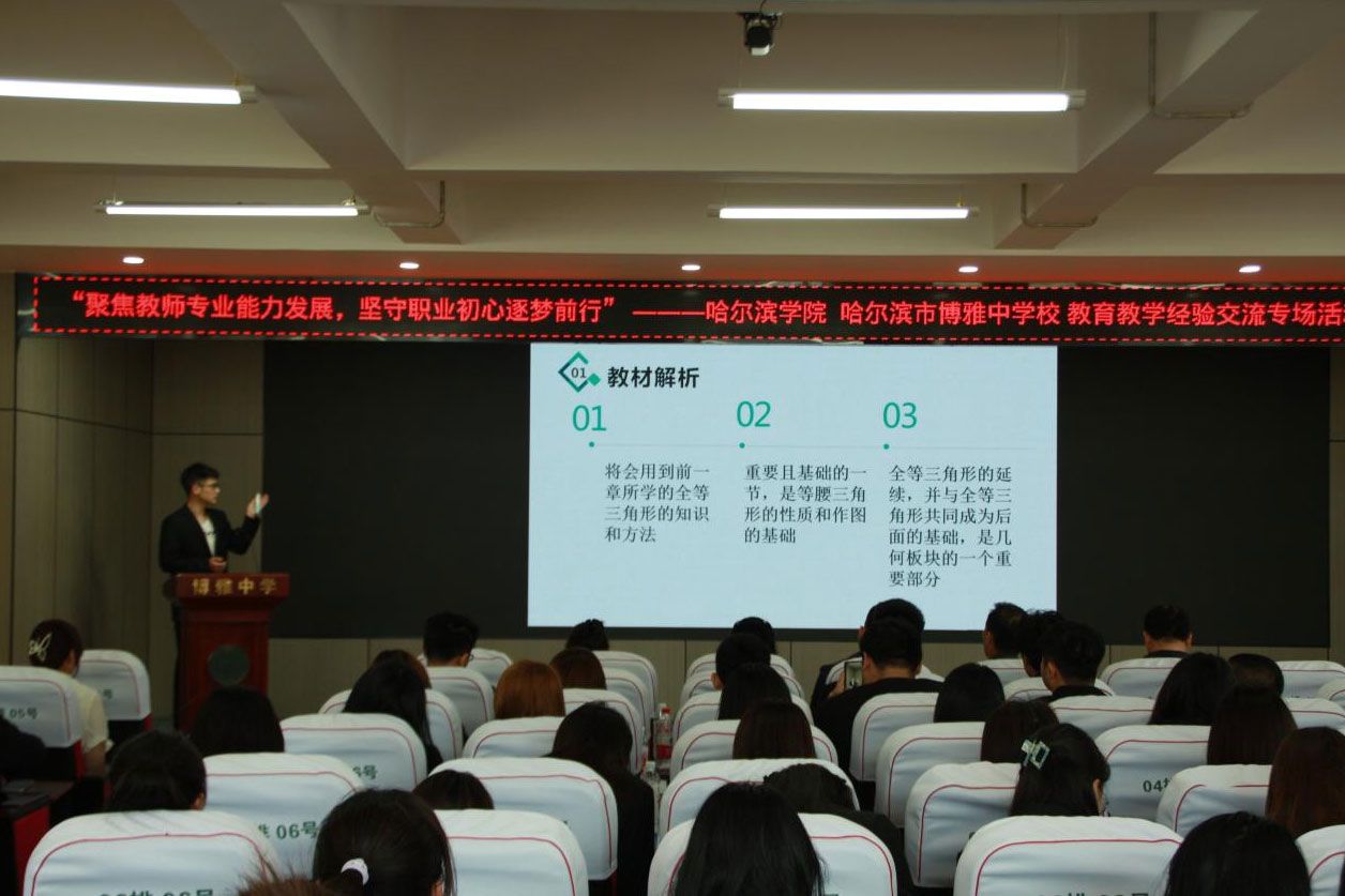 活动中,来自哈尔滨学院的实习生们展示了精心准备的说课内容,他们不仅阐述了教学设计理念、教学目标及方法,还通过模拟课堂的形式展现了各自的教学风采。博雅中学主任王卓担任本次活动的主持人,确保了活动的顺利进行。