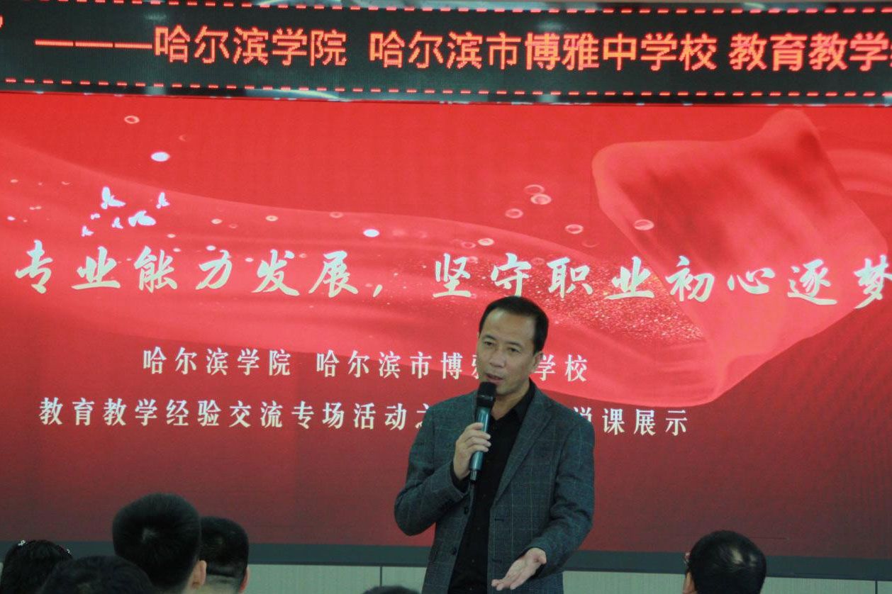 (文/王君)2024年5月24日,在博雅中学成功举办了一场别开生面的实习生说课展示活动。此次活动旨在对教育实习进行中期检查,并为即将步入讲台的未来教师们提供一个实践与交流的平台。哈尔滨学院信息工程学院副院长苑成军教授亲临现场,对活动给予了高度评价和大力肯定。