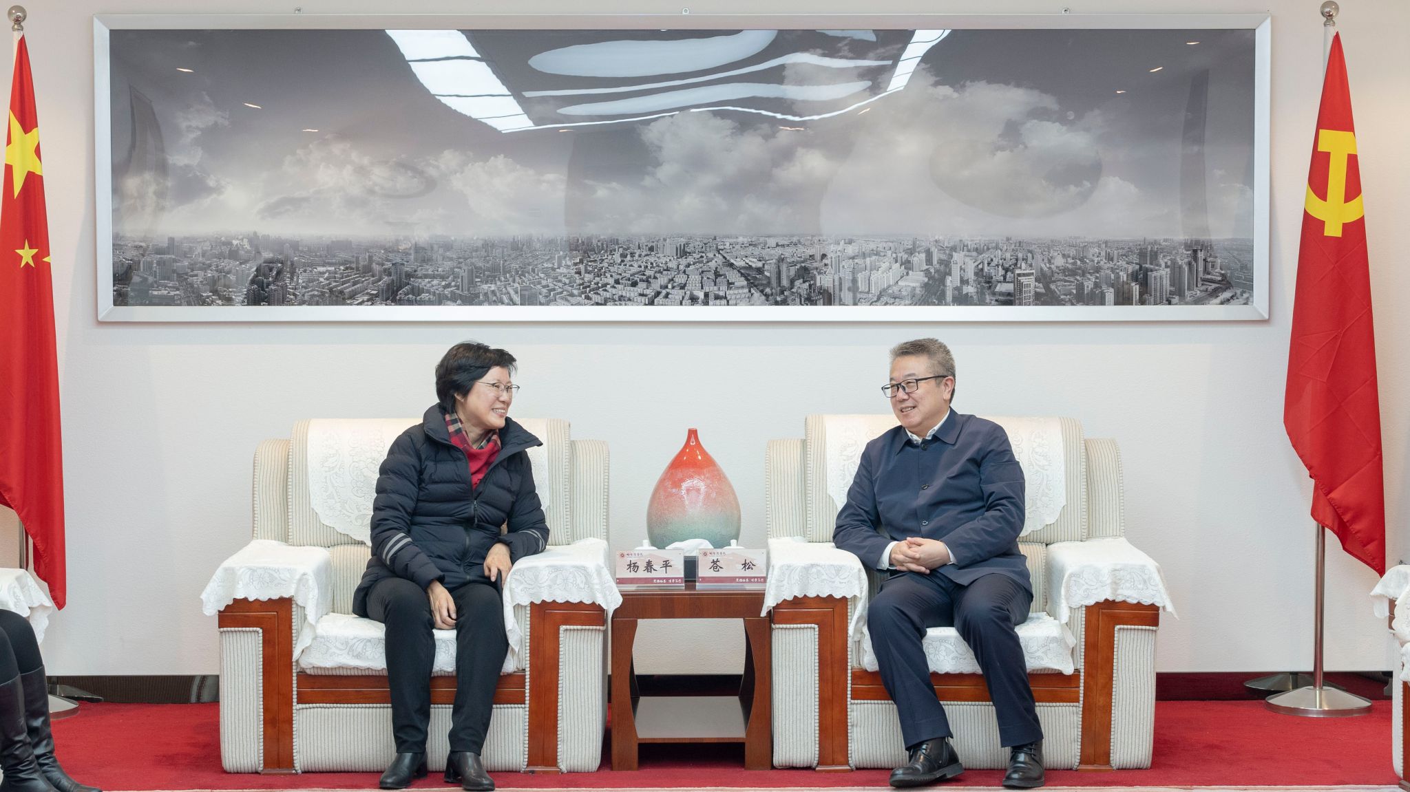 在座谈交流时,两校介绍了各自的办学情况,并展开深入交流。苍松对杨春平一行访问我校表示热烈欢迎,指出,作为市属高校,两校拥有城市这个共同服务的对象,应优势互补,取长补短,积极探索出在校际之间众多领域加强交流、深化合作的新路子,为哈尔滨经济社会高质量发展、可持续振兴作出市属高校应有的贡献。杨春平指出,哈尔滨学院是市属唯一一所全日制普通本科高校,在人才培养、科学研究、社会服务等领域取得的办学成绩令人瞩目,希望两校在专业建设,教学改革,师资培养、共用共享等方面密切合作,共同提升人才培养质量和社会服务能力。