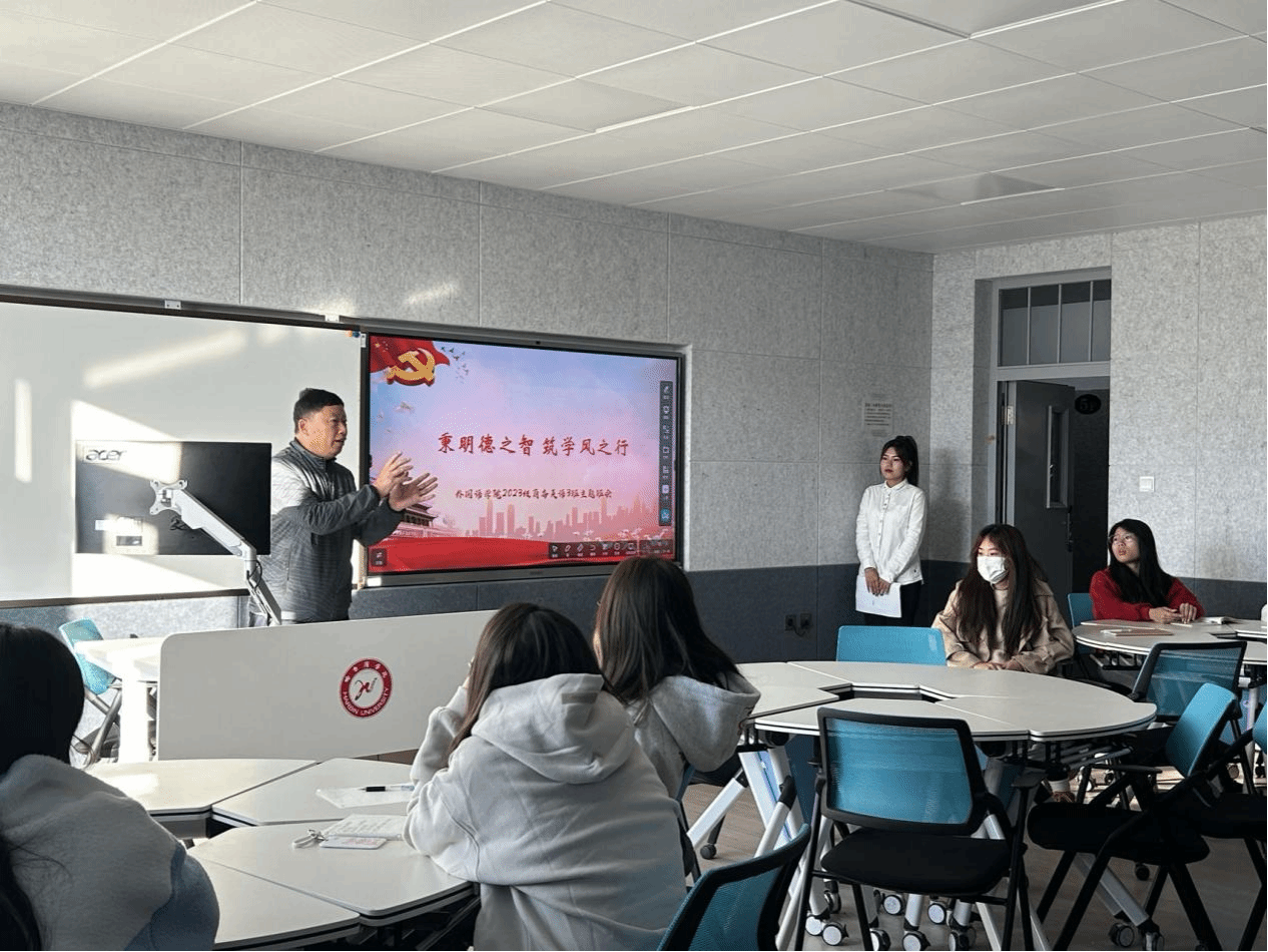 为深入学习贯彻党的二十大精神,全面贯彻习近平新时代中国特色社会主义思想,大力弘扬“秉明德之智,筑学风之行”的学风精神,不断提升我校人才培养质量,努力构建优良学风建设长效机制,外国语学院贯彻落实《哈尔滨学院学风建设实施方案》的总体要求,于10月30日开展2023级商务英语三班学风建设主题班会活动。学生处正处级辅导员丛全喜、学生处舍务管理科科长李丹、学生处易班发展中心科长张满、外国语学院全体辅导员及2023级商务英语三班全体学生参加。