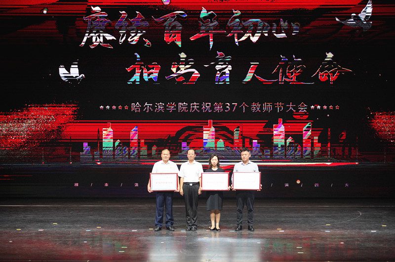 表彰大会上,校领导为获得哈尔滨学院第四届师德师风先进个人、优秀教师,哈尔滨学院第四届教学贡献奖、科研贡献奖、管理贡献奖,哈尔滨学院第四届教学突出贡献奖、科研突出贡献奖获得者颁发荣誉证书。受表彰的老师们满怀幸福喜悦的心情,在全场热烈的掌声中上台领奖。哈尔滨芭蕾舞团、音乐与舞蹈学院、大学生合唱团为教师献上了精彩的文艺节目,表达诚挚的节日祝福。