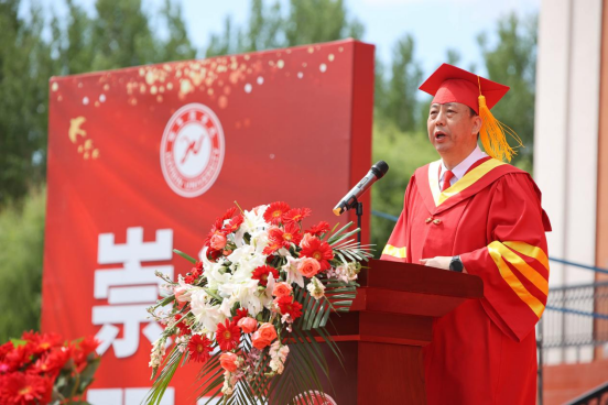 “芳华待灼,奋楫致远”。校长、党委副书记于成学发表热情洋溢的讲话,深情回顾了毕业生与学校同风雨、齐奋斗、共担当的难忘时光。于成学校长在讲话中提出希望全体毕业生一是要“以‘史’为鉴,厚植爱国情怀,共筑民族复兴梦”;二是要“以‘学’为基,锻造过硬本领,聚力时代强国梦”;三是要“以‘德’为先,涵养优秀品格,实现个人成才梦”;四是要“以‘爱’为本,常怀仁爱之心,成就精彩人生梦”四点殷切希望,并强调,全体毕业生是母校永远的孩子,是母校永远的惦记和牵挂,“中兴大道109号”永远是毕业生们的避风港。