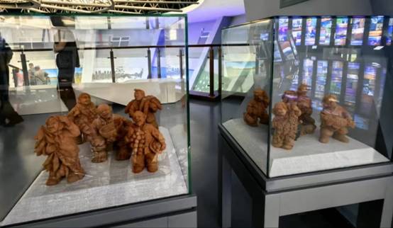 苍松书记指出,优秀的创意设计作品与校园文化环境的建设肯定是一体的,没有好的育人环境没法塑造有创造力的人。此次展出的30多件走进食堂的创意设计作品是艺术设计系党支部推出的“哈苑〞文创工艺美术专业方向设计制作的产品。其中,剪纸作品已开始量化,“中国饭碗端在中国人的手里”泥塑、陶艺作品开始定期陈列。后勤工人现已经开始用这些作品美化布置食堂公共空间的育人环境。