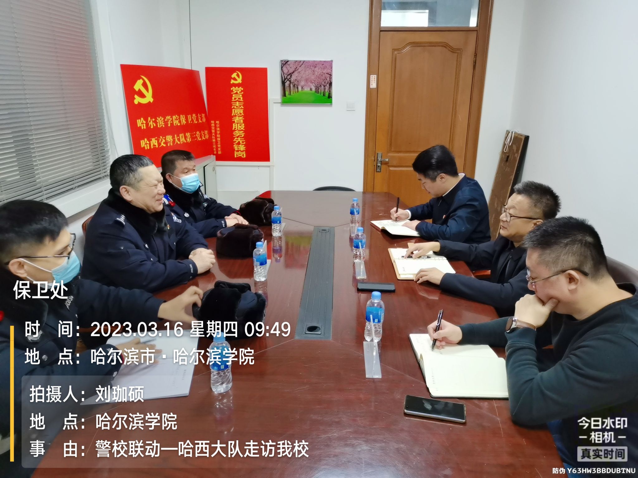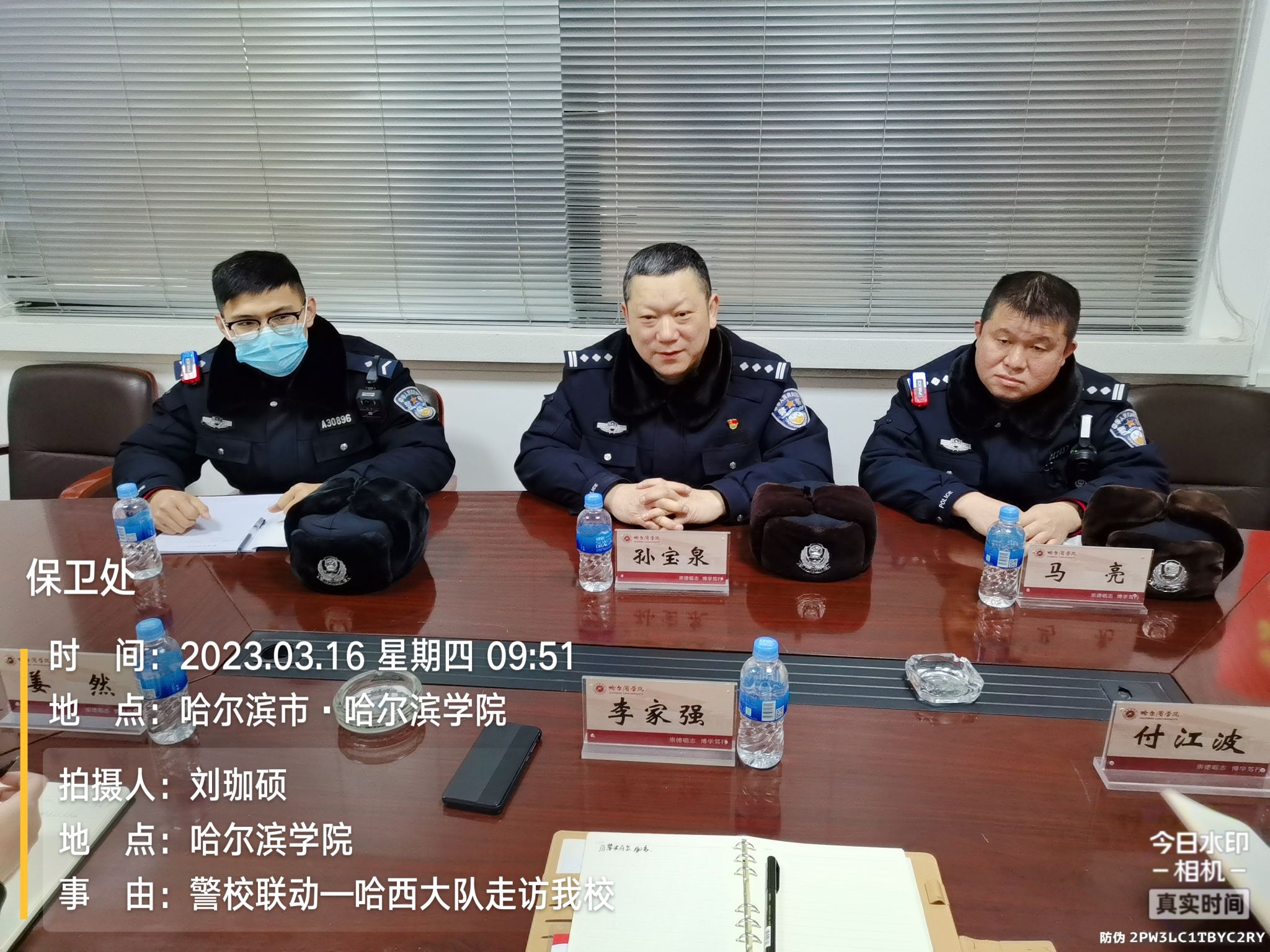 学校保卫处处长李家强接待孙队长一行。在交流中,李家强回顾了多年来哈西交警大队在落实“警校联动”机制方面、在交警普法进校园方面、在各级各类大型考试期间提供的有力交通保障和校园周边交通环境治理等方面与学校的精诚合作,对哈西交警大队对学校的支持表示感谢。孙宝泉代表哈西交警大队明确表态,今后将一如既往支持、配合学校做好校园周边交通环境整治工作、做好校园交通知识和法规宣教工作、为增进师生交通安全意识和创造良好出行环境做出应有的贡献。