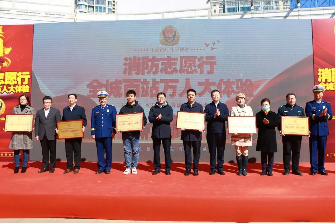 校党委委员、副校长孙红镱参加本次活动,并代表学校上台接受市领导颁发的“哈尔滨市优秀消防志愿者团体” 荣誉称号。保卫处、学生处相关同志和学生志愿者代表共计20余人参加活动。活动期间,孙红镱和学生志愿者李博分别接受在场媒体记者的采访。