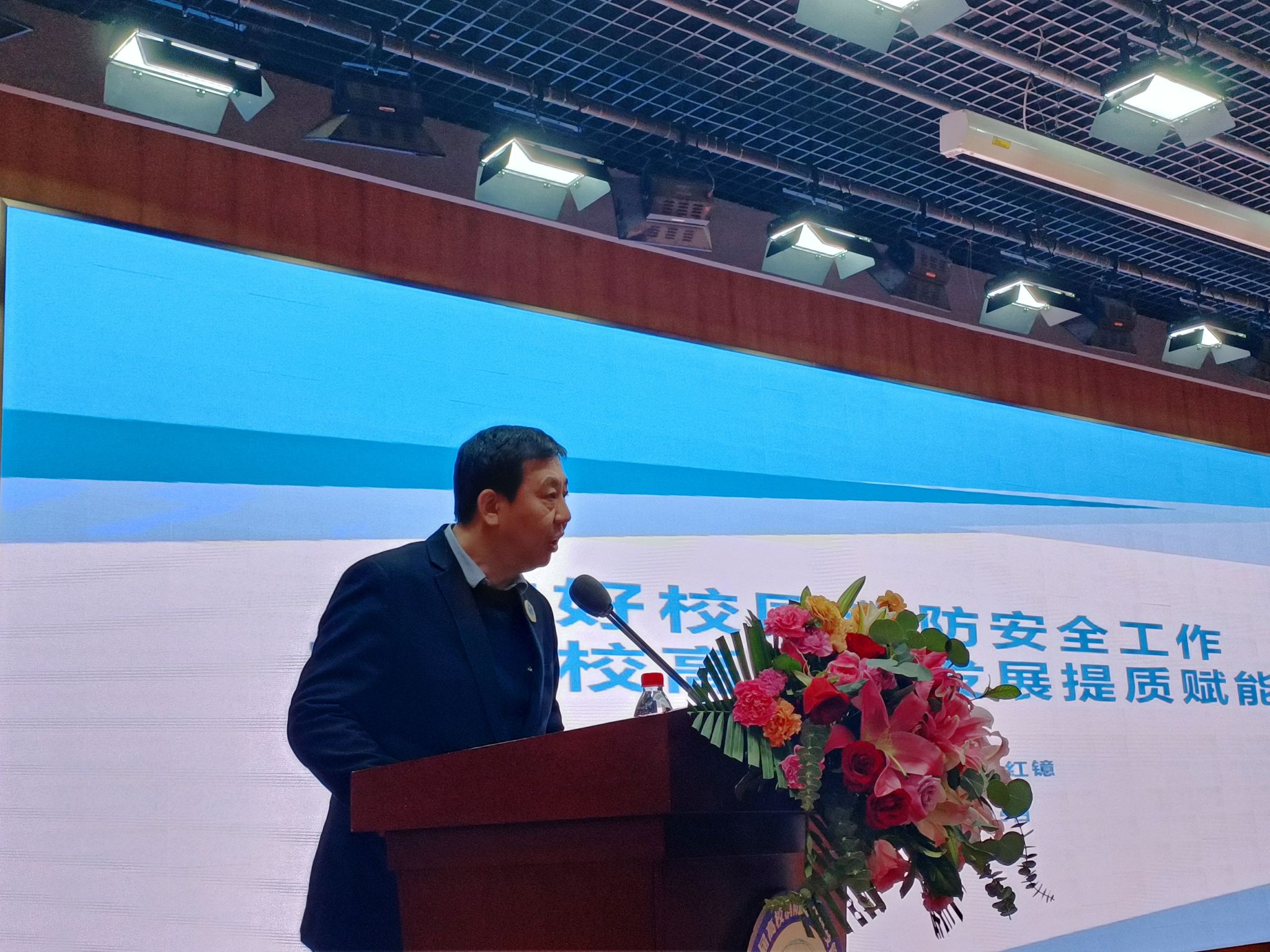 副校长孙红镱做了题为《做好校园消防安全工作为学校高质量发展提质赋能》的主旨演讲。他系统回顾学校多年来在消防安全管理工作中的做法和取得的成效,总结提炼出“四规”工作模式,即遵循规律、纳入规划、执行规范、坚守规矩。从强化意识提升能力,着力提升全员消防安全意识和自救逃生技能;排查隐患破解难题,着力推动重点攻坚任务落实落地;夯实基础服务大局,着力调动师生全员参与消防安全管理工作的热情和动力三个方面介绍了学校近些年是如何扎扎实实做好校园消防安全管理工作。他强调学校消防安全管理工作必须与时俱进,用“四个体系”思维方式指导学校消防安全管理工作各个环节,提出了“七必”的工作要求,即凡是工作必有目标、凡是目标必有计划、凡是计划必有执行、凡是执行必有检查、凡是检查必有结果、凡是结果必有责任、凡是责任必有奖惩。全面运用“四个体系”闭环工作机制,推动消防安全工作责任制落实落靠,扎实做好学校消防安全工作,为学校高质量发展提质赋能。