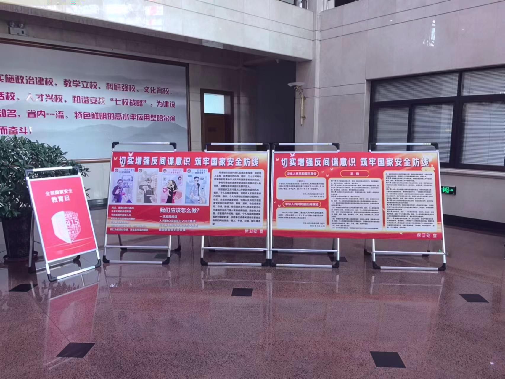 保卫处采取多种宣传方式开展校园宣教活动。一是制作宣传条幅5幅,分别从国家安全、国家利益、创新、荣誉、人民,五个角度阐述国家安全观,在主校区和艺术校区显著位置悬挂,使宣传主题内容更直观的展现;二是制作宣传展板11块,分别从辨识间谍方面提高校园内的防范意识,加强防范间谍本领;巩固抵御邪教的能力,辨识邪教方向提高师生甄别意识;三是利用室内外多处LED显示屏对以“总体国家安全观,创新引领十周年”为主题的宣传内容进行展示,持续深化主题宣教影响。