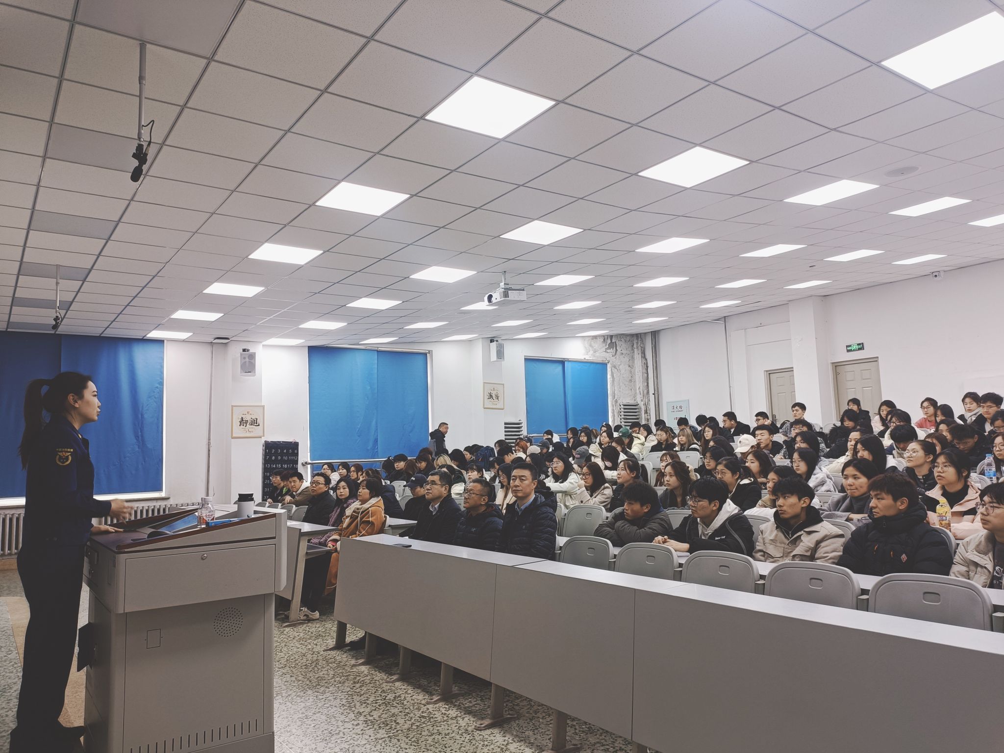 为进一步提高师生消防安全意识和应急技能,主动防范化解火灾风险隐患,确保校园安全稳定。3月12日下午,保卫处、经济管理学院共同举办校园消防安全专题培训暨应急演练活动。特邀南岗区消防局李乐以“校园消防安全教育”为题,为师生代表进行宣教。