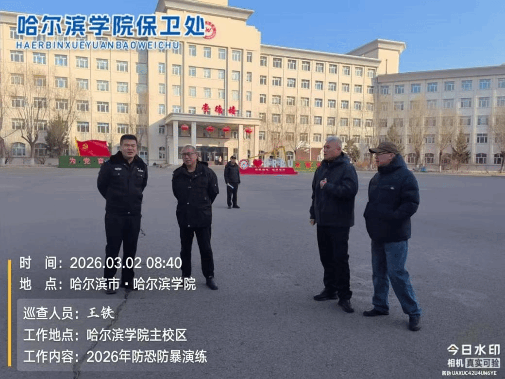 (文/赵家贺)为进一步深化能力作风建设,全面提升校园安全防范水平和应急处置能力,3月2日,哈尔滨学院保卫处在主校区前广场组织开展了防恐防暴实战演练。保卫处副处长揣志强、治安科科长赵家贺全程指挥,南岗分局相关负责同志现场指导,校卫队全体队员与物业秩维安保人员联合参演,共同锤炼应急处突硬功。