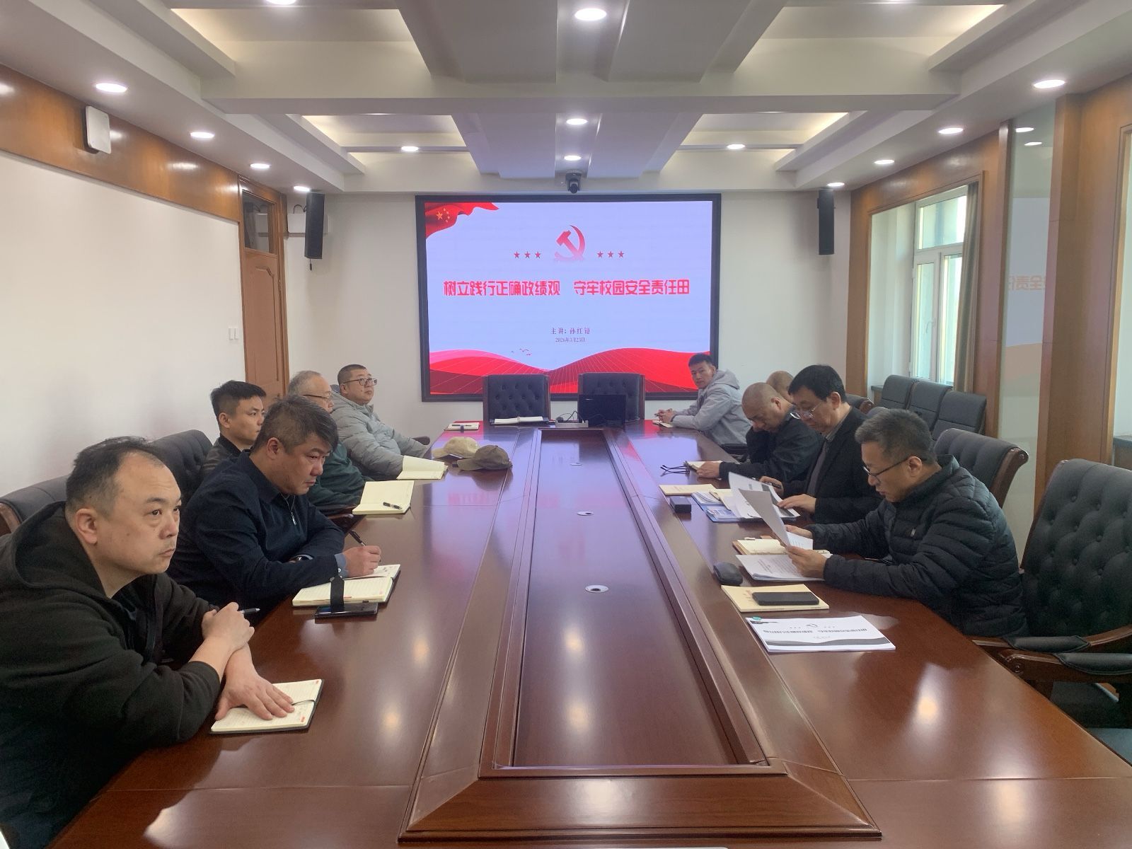 (文/姜然)按照学校组织部《关于做好2025年度基层党组织组织生活会和开展民主评议党员工作的通知》要求,保卫党支部于2026年3月24日上午9:30在行政楼417室召开组织生活会,并邀请副校长孙红镱为全体党员讲授党课。会议由支部书记李家强主持,全体党员参会。