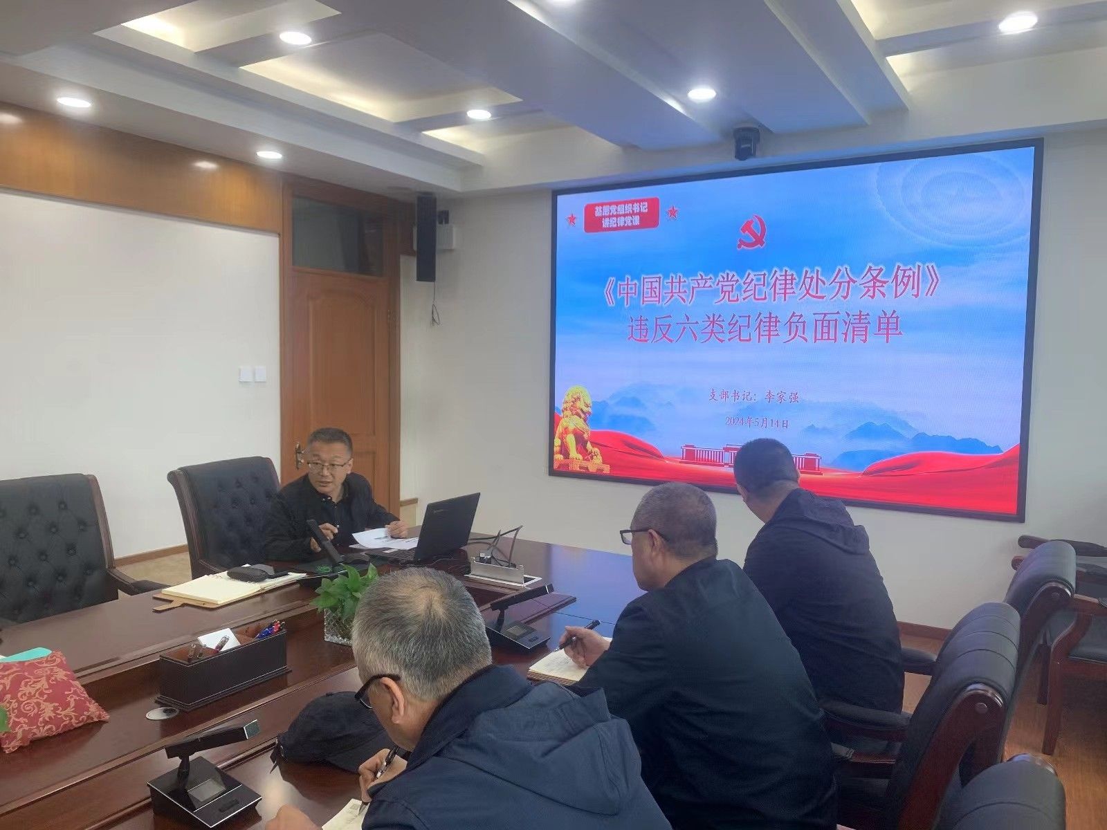 按照学校党委工作部署,依据《哈尔滨学院党纪学习教育工作方案》相关要求,5月14日下午在行政楼417会议室,保卫党支部书记李家强以“学习《中国共产党纪律处分条例》所列违反六类纪律负面清单”为题为支部全体党员讲纪律党课。