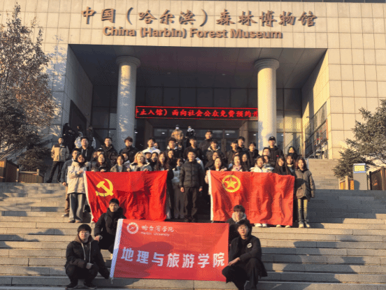 (文/杨立冬,刘彤)为深入贯彻习近平生态文明思想,牢固树立“绿水青山就是金山银山”理念,切实把党的二十届四中全会精神转化为生态资源保护的实践动力。2025年11月21日,地理与旅游学院学生第一党支部联合2025级地理信息科学2班团支部开展以“传承红色薪火,勇毅生态前行”为主题的党团日联合教育活动。活动组织40余名党团员赴中国(哈尔滨)森林博物馆开展参观学习,切实以实践研学强化党团员理想信念,提升思想教育实效。