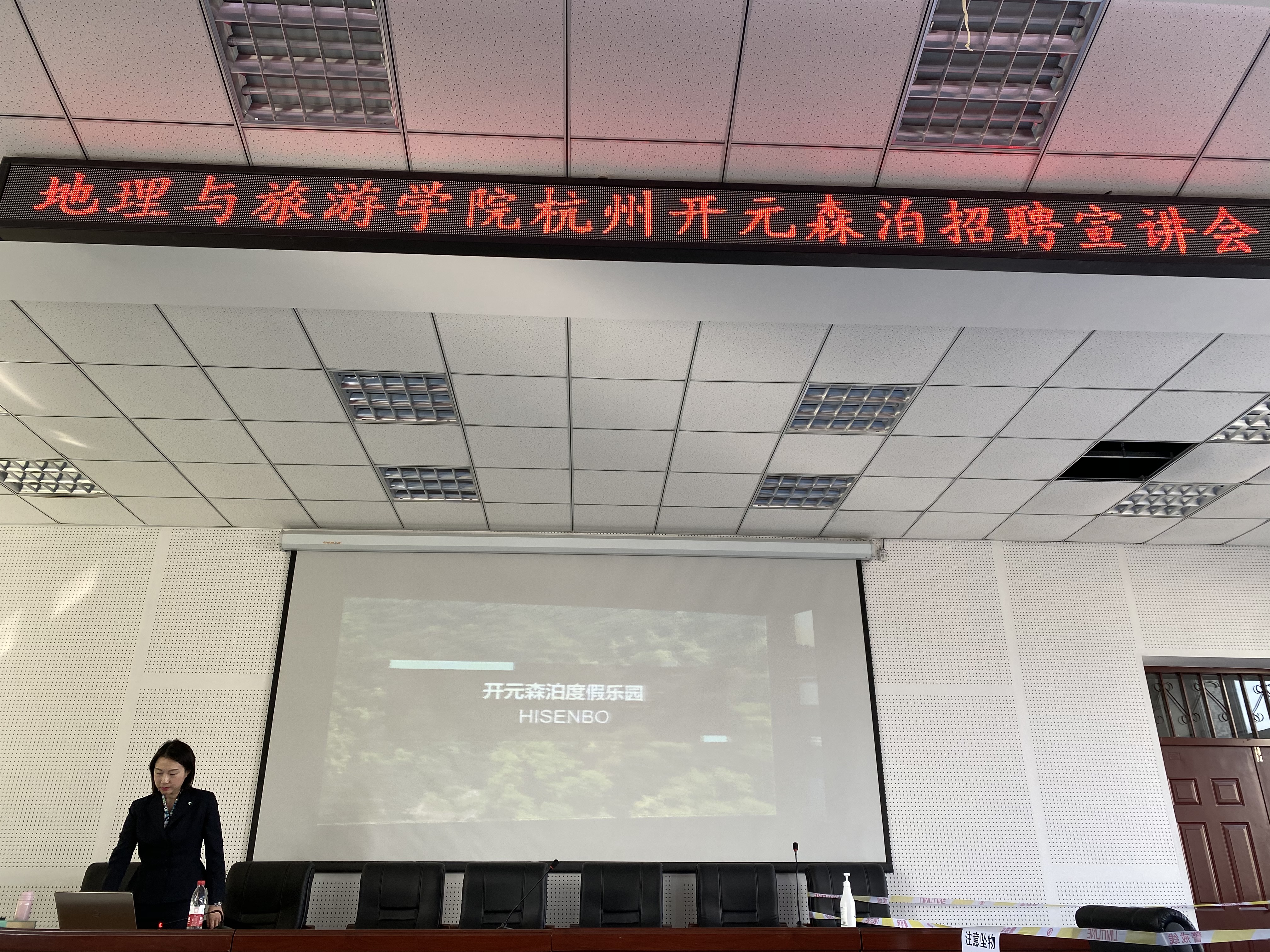 为贯彻落实《哈尔滨学院2021年工作要点》,推进地理与旅游学院2021届毕业生就业工作,2021年3月24日8:30在3号教学楼3411教室特邀杭州开元森泊旅游投资有限公司总经理助理兼人力资源总监陈静开展杭州开元森泊度假乐园招聘宣讲会。旅游系系主任王朝晖、毕业年级辅导员刘彤和18级酒店管理、旅游管理专业学生参加线下宣讲,17级酒店管理、旅游管理专业毕业学生参加线上腾讯会议直播宣讲。