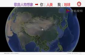 在新内容的教学过程中,鞠老师通过视频、歌曲和图片的综合形式介绍,讲解人类活动对地球生态环境的影响。并创设情境,将歌曲中的“你”想象为人类,把“我”想象成地球,促进学生对课程知识的学习,并将环境保护、可持续发展理念等思政教育融入其中。教学过程环环相扣,重点突出,引导学生参与式学习效果明显。