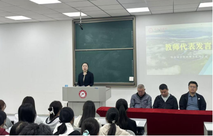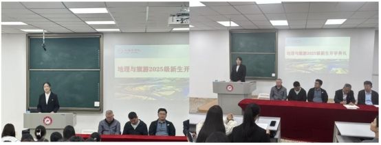 院长首先详细介绍了学院的历史沿革、师资力量、学科建设及发展成就等基本概况,增进了新生对学院的认同感与归属感。随后,他别出心裁地运用象征生命与可持续发展的“绿色”对应环境生态工程专业,诠释探索与科技前沿的“蓝色”对应地理信息科学专业,代表活力与文化交融的“黄色”则对应旅游管理专业。这种新颖的解读方式,深刻揭示了各专业的内涵、特色与发展前景,激发了新生们对专业学习的浓厚兴趣。