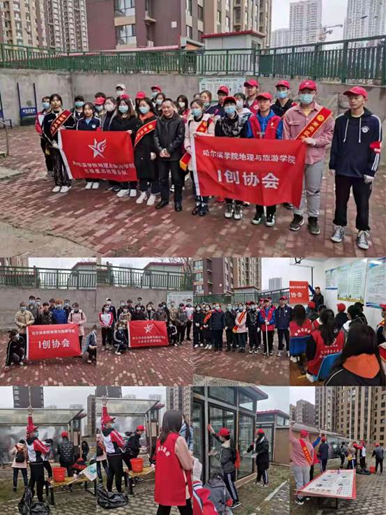 弘扬红旅精神,扎根社区服务,为了提升并强化地理与旅游学院“I创”大学生创新创业协会会员们的思想品德素质和青年志愿者服务精神,2021年4月17日上午9:00,由地理与旅游学院I创协会发起联合北极星志愿者服务队一起行动在社团指导教师于强老师的带领下来到了南岗区学府四社区开展了一次社区志愿者服务活动。活动中师生们听取了社区郭主任热情洋溢的党史党建主题教育活动的介绍,全体队员们佩戴鲜红的青年志愿者服务袖标与社区工作人员们一同来到学苑嘉园小区,布置清理党建展板,打扫公共环境卫生,擦拭小区内公共设施和健身器械。活动中大家干劲儿十足,精神饱满,团结协作无私奉献,得到了社区郭主任和小区居民们的赞许和表扬,展现了地理与旅游学院良好的精神风貌。