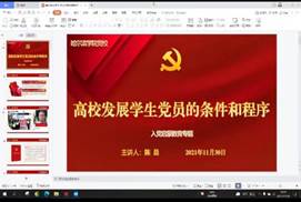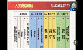 入党启蒙教育是新生入学教育的重要内容,是大学生树立正确的世界观、人生观和价值观的第一课。地理与旅游学院对此高度重视,并按照学校党委组织部安排要求,于11月28日18:00和11月30日18:00两天,分别邀请马克思主义学院王莹老师和组织部陈晨老师为2021级全体同学带来哈尔滨学院党校入党启蒙教育线上课。