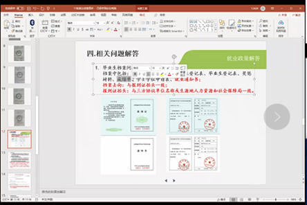 邢珺老师针对毕业生当前就业常见问题进行解答,为同学们分析了今年就业形势、怎样找工作、签订三方协议注意事项、档案转接等相关问题。就如何有效利用黑龙江省大学生就业创业服务平台进行线上签约三方协议做了详细介绍并为同学们答疑解惑当前最关注的就业工作具体问题。