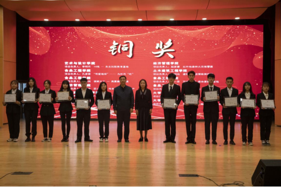 副校长孙红镱、校纪委书记马弘莉为荣获第六届中国国际“互联网+”大学生创新创业大赛省级铜奖团队颁奖