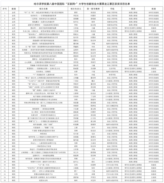(文/黄丽丽、王忠元)7月27日,第八届中国国际“互联网+”大学生创新创业大赛黑龙江省赛区总决赛圆满落幕。来自全省86所高校的2052项目入围决赛,其中有453个项目获得决赛路演资格。经过激烈比拼,我校荣获金奖7项,银奖13项,铜奖35项,奖牌总数55项,金奖数量创历史新高、排名位于全省本科高校第8位。