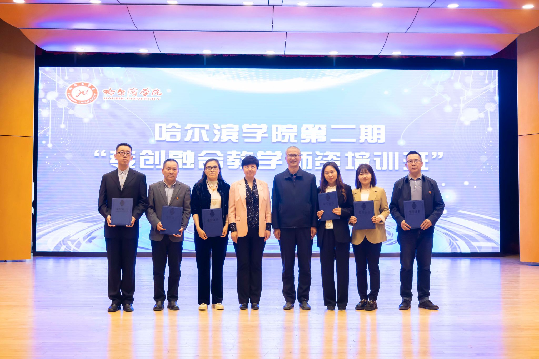 就业指导处处长张成强、教师教学发展中心主任宋阔为首批“专创融合”师资培训代表颁发结业证书