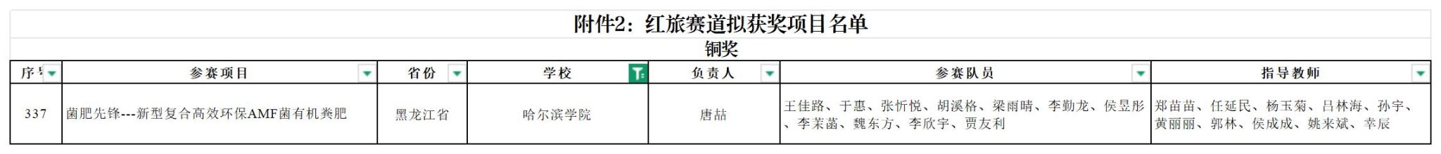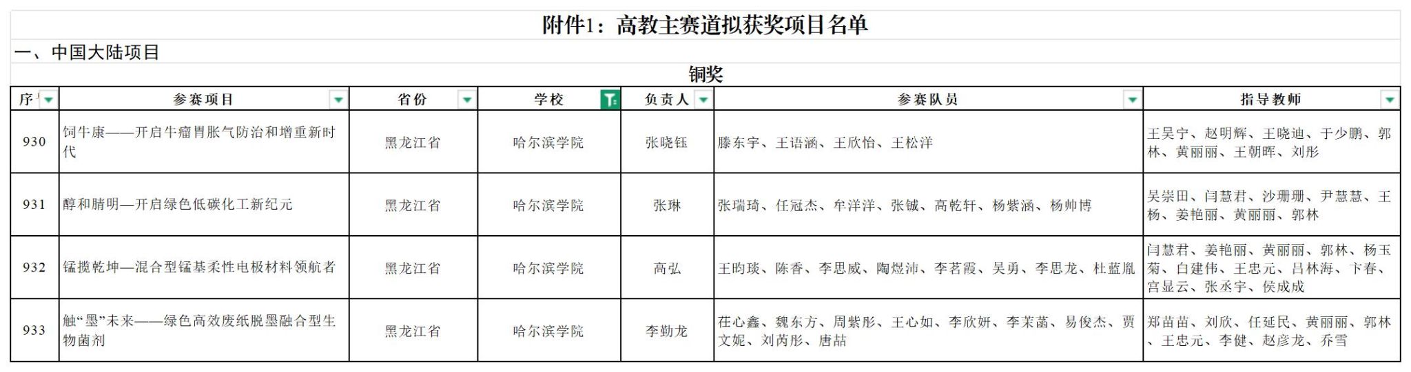 (文/王忠元)近日,教育部发布了《关于公示中国国际大学生创新大赛(2024)拟获奖项目名单的通知》,我校在中国国际大学生创新大赛(2024)中获得5项国家级奖项,获奖数量(高教主赛道+红旅赛道)上升至全省高校第六名,位次取得新的突破。其中地理旅游学院2021级旅游管理张晓钰同学《饲牛康——开启牛瘤胃胀气防治和增重新时代》、食品工程学院2021级化学(师范)张琳同学《醇和腈明—开启绿色低碳化工新纪元》、2022级化学(师范)高弘同学《锰揽乾坤—混合型锰基柔性电极材料领航者》、2022级食品科学与工程专业李勤龙同学《触“墨”未来——绿色高效废纸脱墨融合型生物菌剂》荣获高教主赛道国家级铜奖,2022级食品质量与安全唐喆同学《菌肥先锋---新型复合高效环保AMF菌有机粪肥》获得青年红色筑梦之旅赛道国家级铜奖。